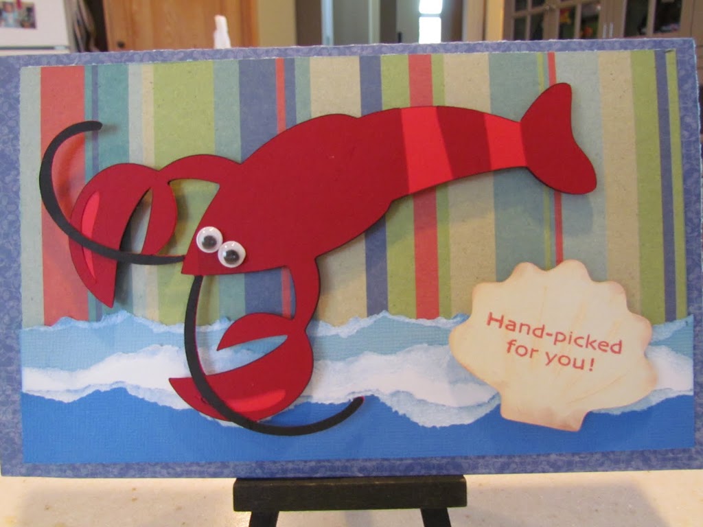 I choose this cute little lobster from the Cricut Pack Your Bags cartridge, added a cute sentiment.