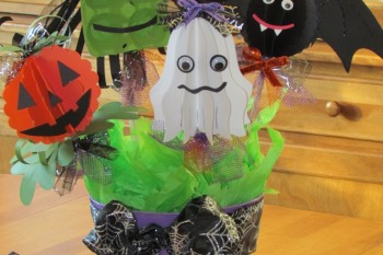Yeah- I'm finally sharing my Halloween centerpiece that's completed! If you've been following my blog over the past month, my idea started with a single pumpkin, then a ghost, a witch and a bat all flew into the mix. The 3D pieces are glued on dowels which are stuck into foam core. I decided to go with a simple purple bucket and wrap a big Halloween Bow around it. Here's the links to my … [Read more...]